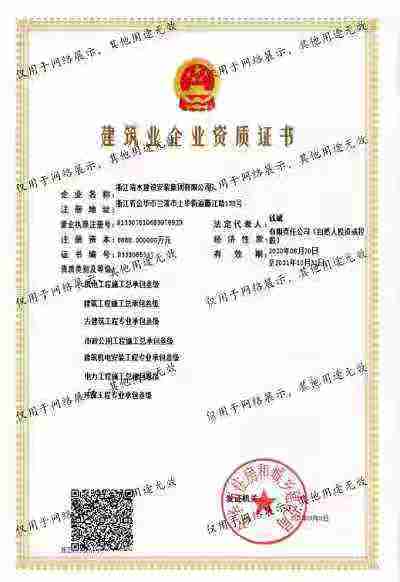 浙江清水建設(shè)安裝集團(tuán)有限公司成立于2013年,注冊資金6688萬元。集團(tuán)具有消防設(shè)施工程專業(yè)承包壹級、城市與道路照明專業(yè)承包壹級、電子與智能化專業(yè)承包壹級、建筑裝飾裝修專業(yè)承包貳級、防水防腐保溫專業(yè)承包貳級、市政工程施工總承包貳級、機(jī)電工程施工總承包貳級、建筑工程施工總承包貳級、電力工程施工總承包貳級、機(jī)電工程專業(yè)承包貳級、環(huán)保工程專業(yè)承包貳級、古建筑工程專業(yè)承包貳級、特種工程結(jié)構(gòu)補強專業(yè)承包、建筑施工勞務(wù)作業(yè)專業(yè)承包(憑建筑業(yè)企業(yè)資質(zhì)證書經(jīng)營